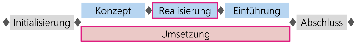 Basierend auf den Lösungsanforderungen des Systemkonzepts und der Lösungsarchitektur wird die Detailspezifikation erarbeitet. Das System wird realisiert: